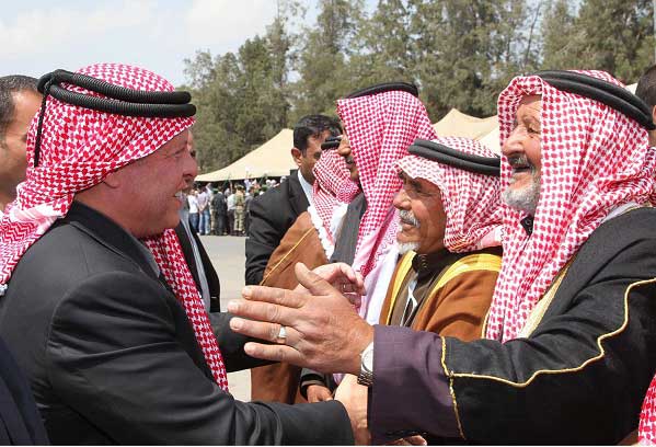 جلالة الملك عبدالله الثاني اليوم الاحد شيوخ ووجهاء عشائر بئر السبع،